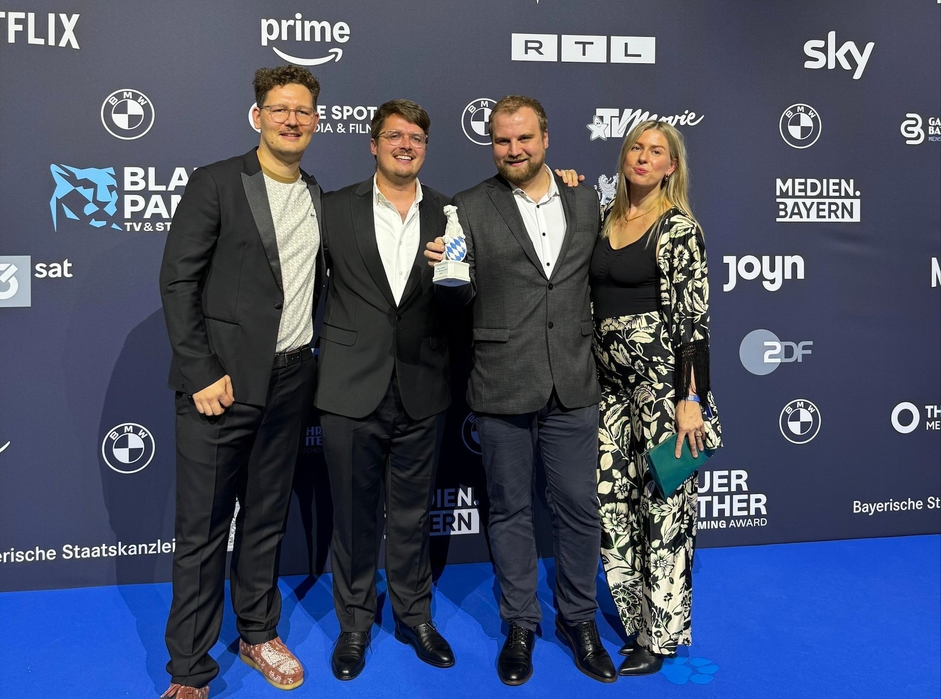 © Charlotte Groth | Von links: Max Greil (Co-Geschäftsführer und Produzent, LAX Entertainment), Paul und Marius Beck (Co-Geschäftsführer und Produzenten, beide Apollonia Film) und Charlotte Groth (Co-Geschäftsführerin und Produzentin, LAX Entertainment)